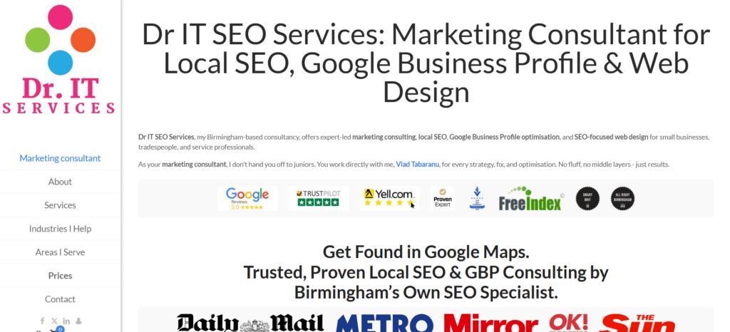 “Thanks to Dr IT SEO Services, our Solihull clinic now ranks #1 on Maps. The best marketing consultant we’ve worked with.”